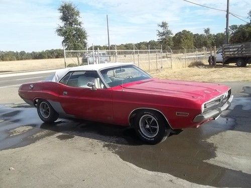 Hi I selling a 1971 challenger convertible that runs and stops and has current reg. The car runs good has good power too for a small v8 it does not smoke or burn oil. Drive straight has good tires with magnum 500 rims. The car is red in color will need light body work and paint was original plum crazy purple the body is decent and the frame and floors or solid. All the electrical are in working condition even the horn, it just got a new white convertible top and glass back window and new pump and hoses. The interior is in decent driver condition with white buckets and floor shifter slap stick and console, the gauges all working the dash pad has a cap on it, included but not install is a factory am radio, the door open and close nice like they should, the window rows up and down easily. The motor is a Original 318 2bl v8 with a 3 speed 904 transmission. The car has a clean and clear California title, this car is pretty much all original except for the paint, I do have a good set of tail trim panel which is included. Was my daily driver for a while but have too many cars you are welcome to come by and check it out or if you want many pics of certain areas just shoot me a message or call me or text direct 415 678 9485 Wayland