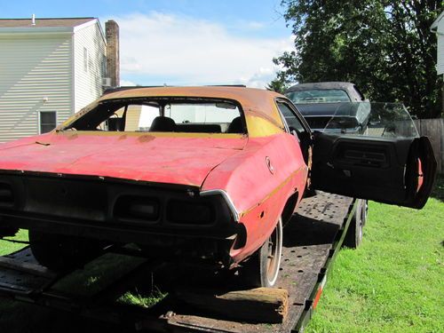 FOR SALE : 2 Dodge Challengers. Between the two there are many good parts to make one good car. Both cars have Vin numbers, fender tags and gauge clusters.Each car has at least one bad frame and 2 good frame sections. These cars were equipped with 318 automatic transmissions and air conditioning,so tinted glass and a 26" radiator support are standard. I have many other parts that are include with this deal to the buyer like, door glass,bumpers, header panel, tail lights,roof section, a 26" radiator,most of all the a/c lines hoses and compressor,new trunk floor sections,and quarter panel patch panels. Both cars have complete 8 3/4 rear axles but neither one is a posi. Buy these and get started on a resto-mod,rat-rod, or a big block Challenger project car. Please call ,text,or e-mail me with further questions. Rob 725 3214 area code 607 No trades at this time. I can deliver to the Mopar madness show on June 30,in Liverpool,NY with a $ 1000 deposit . New pictures with more parts added on Sunday. Check out my other challenger auction.I may be able to help with shipping inside new york state. And I have a transporter waiting to hear from me.Thanks for looking. Rob