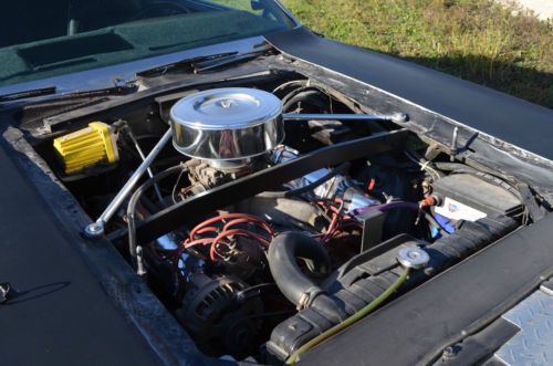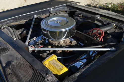 and a windage tray in the pan which keeps the oil from splashing. An electric fuel pump has been installed. There is no air conditioning. The transmission uses a Hurst 4 speed shifter