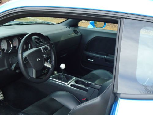 2010 DODGE CHALLENGER SRT8 RARE, B5-BLUE COLOR, EXCELLENT COND, LOADED. PETTY PACKAGE EDITION WITH 6 SPEED HURST. GARAGE KEPT SELLING DUE TO OTHER INTEREST. BUYER WILL HAVE 7 DAYS TO COMPLETE TRANSACTION WITH SELLER, UNLESS OTHER ARANGEMENTS ARE MADE BY SELLER, A one of a kind Vehicle Low miles below NADA Value, Low Reserve, Dont let this one get away will only go up in Value, Only 153 made in this color in the SRT8 according to Dealer Info, and www.allpar.com/cars/dodge/challenger.html Thanks.