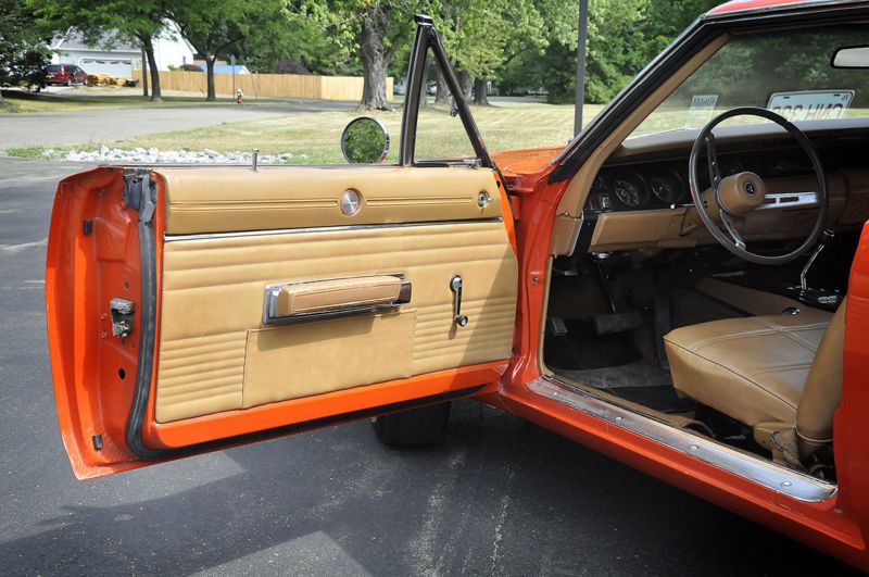The entire interior has no rips. The front seats are original 69 buckets but the head rests were deleted, but the