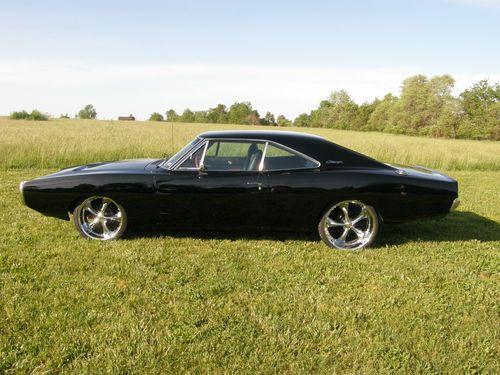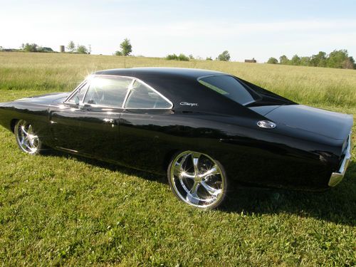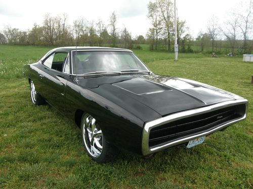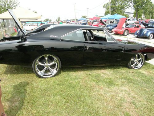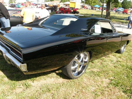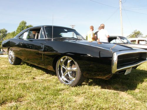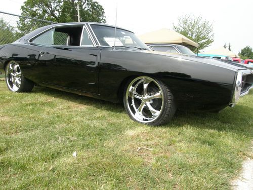 For sale is my 1970 Dodge Charger. It took 2 years to restore this car to show quality. It has a 440 big block with a 4 speed transmission equip with a Hurst Pistol-Grip Shifter. The engine was built at a machine shop and has new rockers and valves, all new pistons , Mopar Performance cam, new 750 Holley four barrel,new Edelbrock intake...this engine is close to 500 hp! The body work and black paint was completed by me. The beautiful two-tone interior is all new also, It has new custom wheels 22"on the rear and 20" on the front, sure grip gears, new flow masters, and a new fuel tank. I put an old school alpine tape player in it with new speakers. I have the car this weekend at the Mid-American Street Rod Nationals. It's a head turner and definately getting lots attention. You wont see a car of this calibur very often. I have the car is for sale locally, so i reserve the right to remove it if some one buys it. I require a $1000 down payment due within 24 hours of sale. The remainder of the cash is due when you come get it . I have a clean title in hand and will help you load the car.