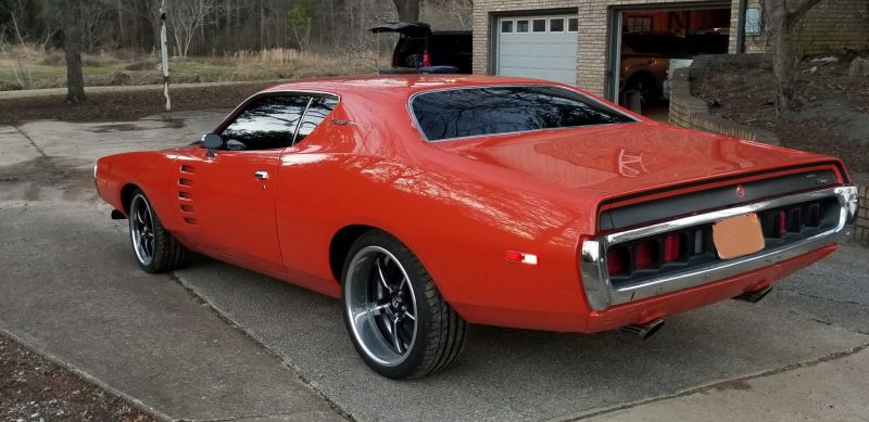CONTACT ME AT : Kamilee78@iname.com My 1972 Dodge Charger hardtop is one of a reported 620 Rallye examples equipped with a 440ci V8 for the model year. The car is finished in orange over black vinyl, and power is sent to the rear wheels via a Torque Flite three-speed automatic transmission. Features include front bucket seats, power front disc brakes, power steering, air conditioning, an AM FM radio, dual exhaust, tinted windows, and aftermarket 19" in front and 20" back wheels.