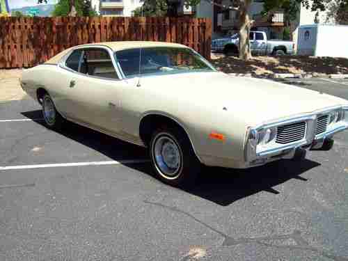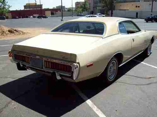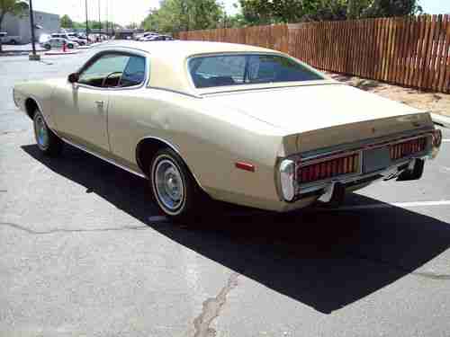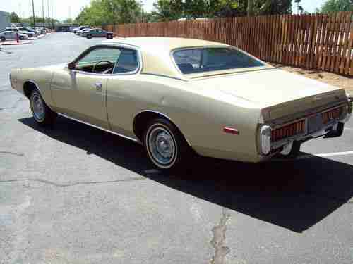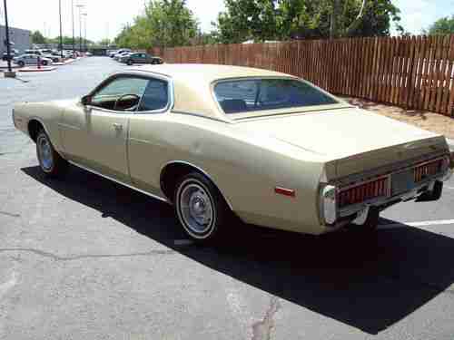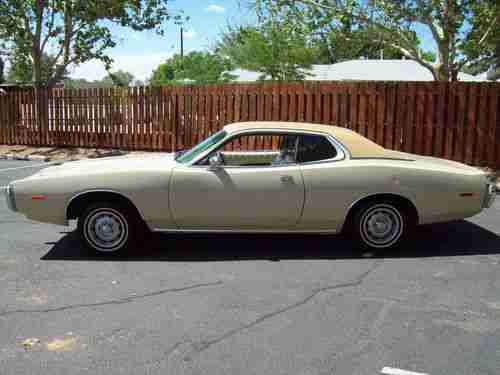 Very nice solid rust free example of a 73 unrestored Charger with 60k original miles, this car runs and drives like new, has no leaks, odd noises, smoke or smells, has a very strong all original numbers matching 318 engine with automatic transmission, power steering and brakes, this car has spent it's entire life in New Mexico so it is very solid and sound from top to bottom. Has am radio and AC that both work, tires are in good shape, just had a recent front end alignment and all checked out good. All the gauges work properly, exhaust is good, the paint appears to be the original and it is thin in some places but overall this car looks really good with just a few very small misc dings. The vinyl top is like brand new, all the chrome is exceptional! rubber seals, glass all excellent.
