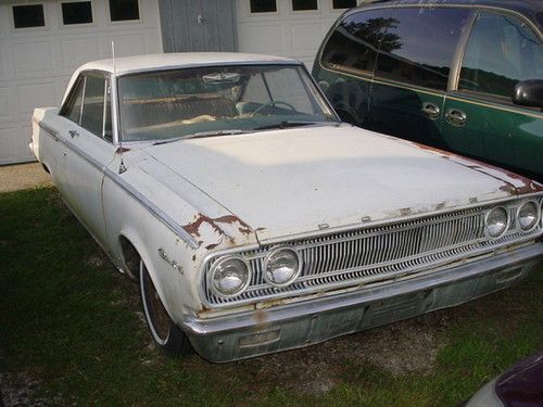 This is a 1965 Dodge Coronet, 273 V8 auto, I am 2nd owner. Car has been sitting in garage for long time. Have started and run 6 months ago, The car is the Rare 2dr Hardtop Coronet 440 model. The engine and trans came in it from factory. Health problems has stopped me from working on anything and forces the sale of this car. There is no floor boards rotted out, all glass in it clear. Interior is in poor shape with headliner falling down and seats with splits. I will try and answer any questions. Thank you for looking.