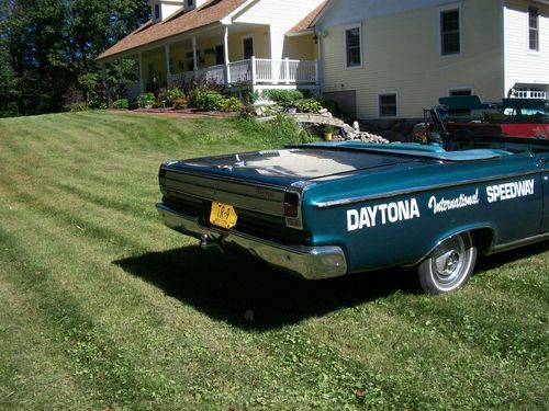 1965 Dodge coronet 500 conv 318 auto console buckets PS I lettered the car as a Daytona 500 Pace Car like the the one used to Pace the 500 in 1965 decals are Vinyl & easily can be removed I have owned the car for 15 years runs & drives like a 65 has 11 in brakes & sway bar which would make a great donar for a 426-s wedge car the car came from Oregon & has no rustout anywhere super solid has a posi tag on rear end 77965 miles has a few extra parts & service manual just a great driver thats fun & gets a lot of looks has top boot conv top is not great back window is cloudy may be origional to test drive call Chuck 518 5273333 car located near Albany NY