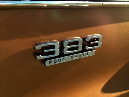 This is a factory HP 383 4bbl with 727 automatic transmission with 323 rear axle. It has factory air (not working at the moment) and Power Steering. Odometer shows 28,000 plus miles which is really 128,000. This is not a show car but rather a fantastic Saturday cruiser or daily driver. The paint and upholstery show normal signs of wear and tear. The left rear fender area has some previous minor body damage which is starting show some, however every where that I drive this car I get numerous complements and even had a couple of offers to buy it, but I have not been ready to sell it till now.