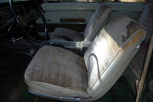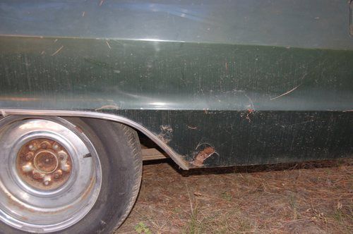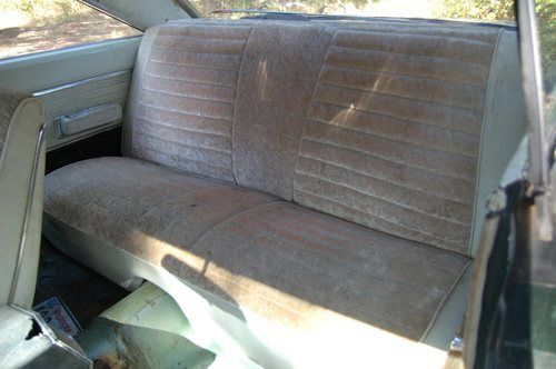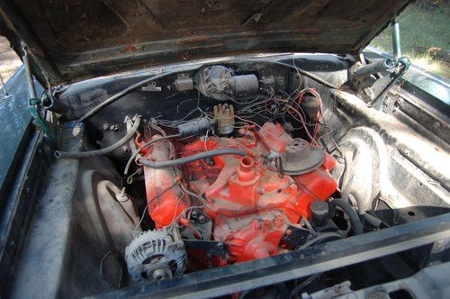 2-bbl carb and the radiator so those are not with the car. Also missing some hoses ,sparkplug wires etc. I was also told the tranny was working properly, but again, I can't verify that. Power steering, manual brakes will pump up, so they probably need bled. Right rear tire has a slow leak, other tires are rollers only. Chrome wheels are showing their age and have some surface rust.