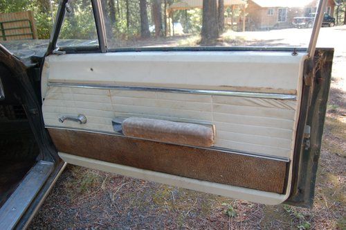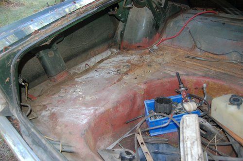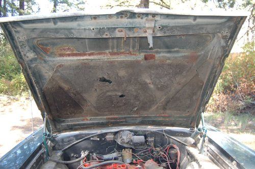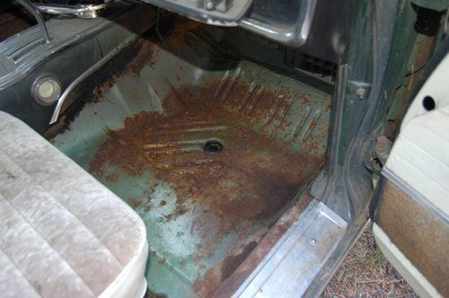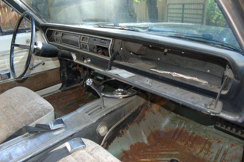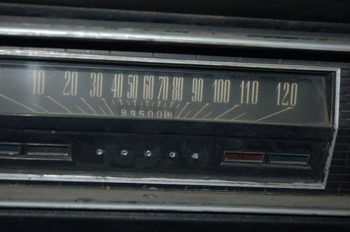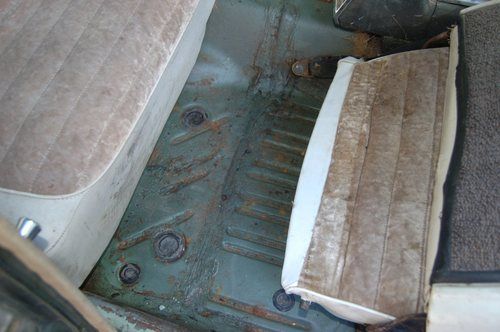 Interior is complete but in need of restoration. Floor pans and trunk pans are solid with surface rust only, with no known cancer. Car is missing the ignition switch, heater controls and radio and the dash pad has several cracks. I do not have any keys.The odometer shows 99,500, but I have no idea as to its accuracy or if it has turned over.