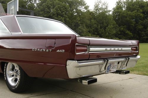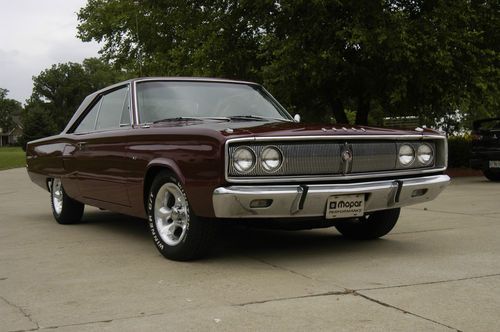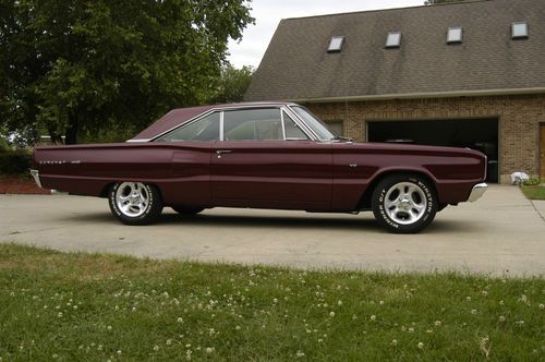 You are looking at a beautiful 1967 Dodge Coronet. The car was completely restored four years ago inside and out. The exterior is a classic maroon color with a very clean white leather interior. The car has cold a/c, power brakes, power steering, 3 speed torque light transmission sitting on chrome mags with all new tires. This Coronet also has original bumpers, dash, gauges, and working am/fm radio. During the restoration the engine was replaced with a 375 horsepower 4 barrel carbureted engine that now has 2000 miles on it. The body of the car has 246,804 miles as pictured. As you can see this is a beautiful car and with the new engine would make a great daily driver as well as a wonderful show car. Contact Tim for details or more pictures (765)479-2500. Thanks for looking.