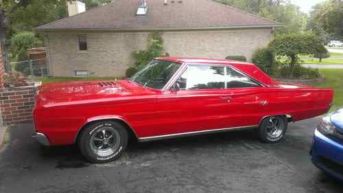Here we have a1967 coronet rt in excellent condition, not a full car show display vehicle but very nice driver and respectable cruise night vehicle.this car has had an extensive frame on restoration some years ago by previous owner, have just driven it and enjoyed it myself. to start, this is a real rt not a clone, I do have certicard. It has a rock solid body with all original panels, rust free floors, trunk, rockers,numbers matching core support, rust free body, there is a little filler in lower quarters but super clean car needing no rust repair. One repaint base/clear done in original red. Paint is 8.5 out of 10, maybe better. Engine is a 72 rb 440 performance rebuilt runs great everything new, rebuilt 727 trans with cheetah valve body reverse manual shift, rebuilt 8 3/4 sure grip posi with 4.10 gears.cruises @ 55mph on freeway all day if you choose.this car has new exhaust,brakes,gearbox,steering components,gas tank,battery,carpet, legendary seat covers, everything has been gone through, I've just driven and maintained it since I've owned it. (2+years) the headlight surrounds are a little beat up but I will include a super nice grill and surrounds I bought for $1000. As I will no longer need them and I just never had time to switch item out, also a new repop fan shroud.the car is being offered at a low reserve as I am serious about selling.500 non refundable deposit due at auction end by winning bidder through pay pal, rest of funds within 7 days by bank wire transfer or cash before car or title leaves my hands! Good luck , bid to win as this is being offered with a low reserve and will only go up in value, my interests have just changed and would love for someone that really knows what this car really is to own it and love it as I have.thanks. Oops sorry I almost forgot to say the gas gauge isn't working now ,not sure why ,haven't had time to look.everything else works fine ,lights,heat,wipers,windows,etc,etc