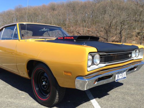 Up for offering today is a 1969 Super Bee 440 Six Pack car, 23,000 miles and in the very rare color combination. This was a special order car , Bahama Yellow and Red Bumble Bee striping. The car is absolutely BEAUTIFUL, the paint and bodywork were done to a very high standard. The car was disassembled,repaired,refinished and reassembled. The current owner has owned it for 10 years ++, it was not built to to make a profit,it was done to add to his collection. The underside is as nice as they come, nicely detailed. The vehicle originally came from Wisconsin, 2 owners there, then purchased by an exotic car collector in California. The car was then purchased by its current owner in Long Island,New York. At this point, the collection rarely sees the light of day and the current owner has decided to let some or possibly all the cars go. The Super Bee with the A12 engine conversion package is one of the most sought after factory combinations. The car offered here has its original, engine properly dated and correct sequence #, the engine runs strong, pulls great and sounds like a 440 Six Pack should. Transmission is also correct, both pad stampings can be seen in the photographs.The transmission shifts well, a factory Hurst shifter as well.The Dana 60 rear has 4.10 gearing with sure-grip.The radial "Red Lines" give the car the correct look and allow it to be driven safely. As you can see from the pictures it has great lines, the car will not disappoint any serious buyer. Given the rarity of the car, the unique color combo and the fact that she still sports the driveline she was born with, this should put this car into a very elite group of cars. I do not have the original build sheet,just a copy, it was decoded by Galen Govier,a copy of that is available for information. Please,if you are a serious buyer ,I have all the time in the world , I will help you get it anywhere, I will work with you regarding pre-purchase inspections, I want to help. The current owner is healthy, not getting a divorce and doesn't need to sell, please keep offers real, NO TRADES. The car has gone about 80 miles a year since the current owner has had it, it needs to be used, I have cleaned up the carbs, dropped the fuel tank and cleaned her up, the AM radio is currently not working , the dimmer switch is touchy , the car would benefit from being used more frequently. It is not perfect, but it is attainable for the new owner. I will add a couple of pictures during the auction as it moves along. The high bidder will be responsible for all transport,taxes,fees and associated with the pre-purchase inspection and logistics. A $2,000 non-refundable deposit will be required within 48 hours of auction end. I also will need to exchange contact info and addresses. |