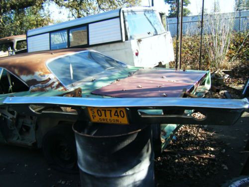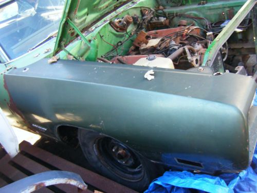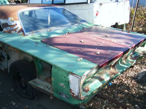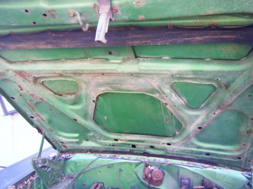 It has the matching number 383. Original F-6 Bright green!!!!!!!!!! A rare 1/2 year only color I restore Mopars professionally and this one is an easy car to restore I have the original fender tag Car has very little and I mean little rust. The trunk floor is not rotted! Automatic transmission. Floor console, Bucket seats, Rally dash I have new quarterpanel skins which I will attach via sheet metal screws for transport. I have a nice rear tail light panel which is included. Included but not pictured are: Nice rear bumper, rear seats, Gauge cluster, quarterglass, Grill and headlight buckets, Tail panel trim piece. Front bucket seats, Door panels with woodgrain inserts, and Woodgrain steering wheel. I am also including a nice flat hood so it could be converted to an Air Grabber The reason for removing the quarterpanel skins was due to dents. Only rust was at the bottom. the tail panel also has dents so we are including a replacement Original part. I will post more pics as requested. Do not hesitate to ask Missing: Carb, Air cleaner, Radiator, This is a chance to own a rare mopar. We can also restore the car for you. Please contact us for more information |