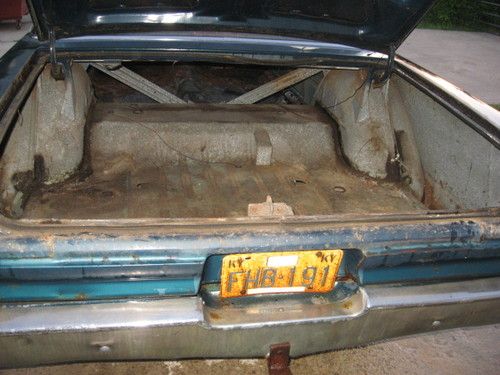 this car does NOT need floor pans or trunk panels replaced...only left corner cowl patch and a few small patches..just like all 62-5 b bodys. light surface rust on front floors non undercoated car..trim very decent ..original bucket seats ,rear seats ,and console included,.. will be put back in car before pick up..engine/parts will be safely packed in trunk for pick up thanks rick 928-377-0383 also has very nice magnum 500 wheels and tires from 68 gtx nice chrome tires etc..