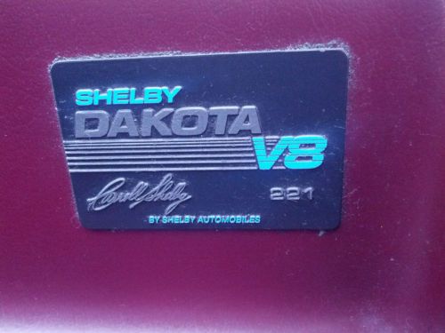 1989 DODGE DAKOTA SHELBY -- OVERALL GOOD CONDITION - RUNS GOOD WITH EXCELLENT AC/HEAT 221 of 1500 MADE 318 WITH 4 SPEED AUTOMATIC TRANSMISSION, 390 GEARS POSI TRAC NORMAL WEAR AND TEAR ON SEATS EXCEPT: ANTI LOCK BRAKE LIGHT IS ON BUT BRAKES ARE GOOD. DOES HAVE A WATERNECK LEAK, BUT WATERNECK IS INCLUDED DECALS ARE STARTING TO COME OFF THE PASSENGER SIDE DASH IS CRACKED PLEASE SEE PHOTOS. DEPOSIT AT AUCTION END WITH ARRANGEMENTS FOR PICK UP OR SHIPPING MADE BY BUYER. PLEASE EMAIL ANY QUESTIONS YOU MAY HAVE. PUG RESCUE HELPS ABANDONED AND ABUSED ANIMALS, THANKS FOR LOOKING