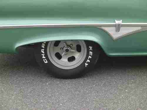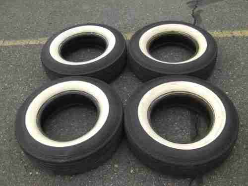 The aftermarket "mag" wheels and near new steel belted Kelly Charger P225 70 R 15 tires are a nice cosmetic and utilitarian addition to this very sharp looking car. I don't have the original wheels, but I have the original tires (Remington Cushion-Aire Poly 4ply Polyester Tubeless 478)! and they have very good tread still, but are quite a bit older and probably should only be used for display or collecting purposes. I also have a set of four original14" hubcaps, which the previous owner had left in the trunk. I think the car would look even better and more original with the hubcaps and while walled tires. A set of 14" steel wheels should not be too hard to find.