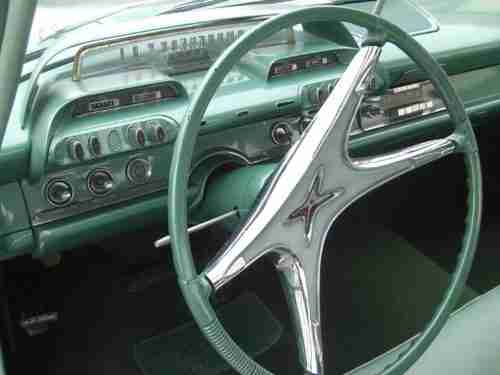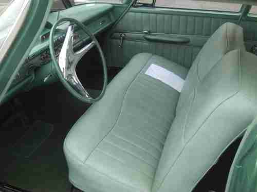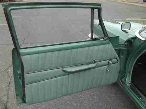 This very nice and rare Mopar did receive a very substantial cosmetic restoration a few years ago by the previous owner who had purchased the car in the early 70's. The car was repainted it's original color, a spruce green metallic with a white top. Most of the chrome was re-plated and the stainless steel trim work was polished. The interior was completely re-done as well, in a light jade green that very nicely compliments the attractive two-tone paint scheme. After enjoying the car for awhile, the owner put it in storage for a few years. The exterior paint still looks amazing, but there are a couple of very minor blemishes, scratches and imperfections that are normally seen on older restored drivers. The bumpers, sill plates and other components were re-chromed again last year and are absolutely gorgeous. All the stainless steel and aluminum trim is in excellent shape. Some of the pot metal has very minor pitting which is normal and to be expected on any older car.