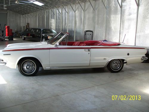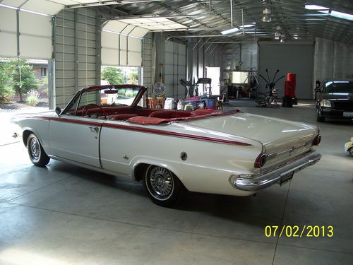 CLEAN AND ORIGINAL 64 DART CONVERTIBLE-POWER TOP WORKS GREAT, VERY RARE VEHICLE CLEAN ENGINE AND TRUNK, PAINT HAS BEEN TOUCHED UP A LITTLE, A GREAT DAILY DRIVER FOR THESE SUMMER NIGHTS, TOP IS IN GOOD CONDITION , NO TEARS, WHAT A FIND, NOT TO MANY OF THESE AROUND!!!!