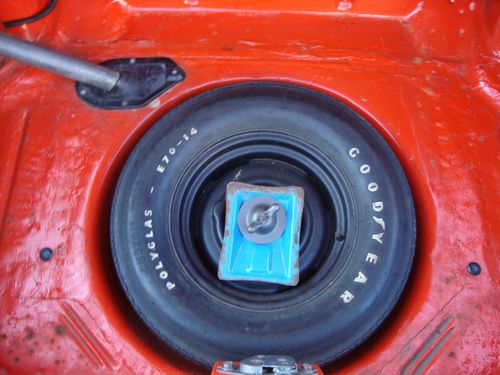 * TRUNK: ORIGINAL TRUNK FLOOR, AND TIRE WELL. ALONG WITH THE ORIGINAL SPARE TIRE AND ALL THE JACK APPOINTMENTS. CLEAN NO RUST.