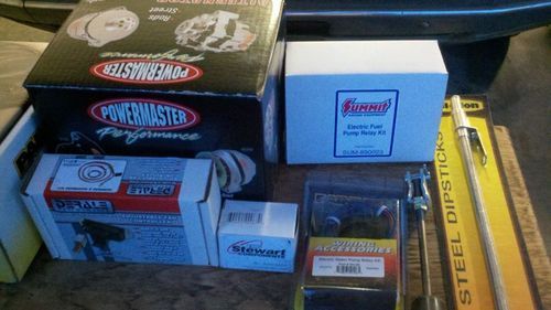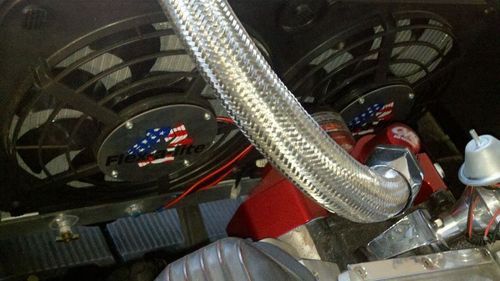 All steering components are brand new with poly bushings all around, new hedman headers, high torque mini starter, 3" exhaust cutouts and 3" x-pipe, high performance chamber mufflers, Schumaker engine mounts and torque strap, Edelbrock Street performance electric fuel pump, Quick Fuel bypass fuel pressure regulator, brand new stainless steel braided fuel lines 8an, flex-a-lite lo-pro electric twin fans.