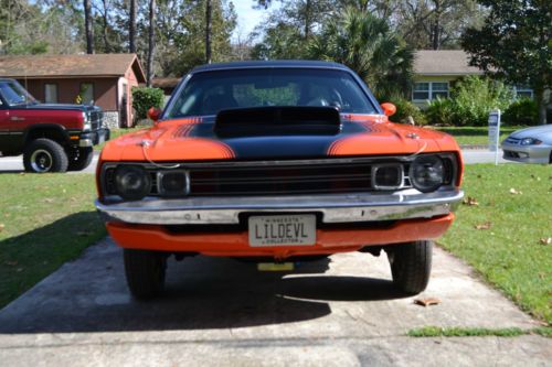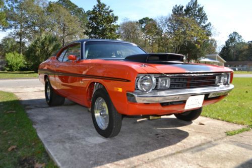 1972 dodge demon. Fully restored beautiful car. Very fast street car that is ready to race. Originally a 340 automatic car. Car was stripped and painted with dupont base coat clear coat about five years ago. It is wet sanded very flat and straight. Paint is very nice. The underside of the car was also sandblasted and painted black and undercoated. The engine bay and inside of trunk were also blasted and beautifully painted body color. The vinyl top was newly installed after the paint. The car has full stock interior with newly recovered bucket seats and has the console with a aftermarket shifter in it. It still has the backseat also. It has a 12 point roll cage with swing out side bars. The rear end is a narrowed dana 60 with 4:10 and a spool. It has caltrac leaf springs and traction bars. It is mini tubbed also for tire clearance. The mini tub is nicely done and the wheelwells look factory. It has four wheel disc brakes. The front suspension is stock and has been rebuilt with new parts. The transmission is freshly built with reverse manual valve body, bolt in sprag and 4 pin planetaries and alto red clutch discs. It has a dynamic 5000 stall 9 inch converter. It as 3 1/2 inch exhaust with an x pipe and hooker aerochamber muffters. The engine is a 1972 400 block 230 casting. It has a half fill of hard block. It is stroked to a 512. Aluminum bcr main caps. Comp roller cam and lifters 263/270 duration and 681/688 lift. Indy single plane and 1050 dominator. Msd distributor and ignition. Edelbrock victor heads with hughes engines stage 3 cnc port job. Heads flow like 360 cfm. The engine is fresh with very low run time on it. Just a little street driving. Engine made 703 horsepower and 672 torque on the dyno. It comes with dyno sheets.And it runs nicely on pump gas with 10.7 compression ratio. This car is really nice and gets lots of attention wherever it is. It is not a 100 point show car but it is a very nice car.Car has never been raced only street driving. It should run low ten second quarter mile times. Serious buyers only.