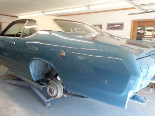 UP FOR SALE IS A 1974 DODGE DART SPORT THIS WAS ORIGINALLY A 318 CAR BUT NOW HAS A 360 MAGNUM ENGINE THIS CAR IS IN GREAT SHAPE AND HAS A FRESH HIGH DOLLAR PAINT JOB IN THE ORIGINAL B-5 BLUE OPTIONS ON THE CAR ARE AS FOLLOWS FROM THE FENDER TAG FRONT DISC BRAKES POWER STEERING FOLD DOWN REAR SEAT BUCKET SEATS CONSOLE AIR CONDITIONING CRUISE CONTROL CENTER CONSOLE FULL VINYL TOP FACTORY MAG WHEELS INTERIOR DECOR GROUP SHELF PANEL MOULDING TINTED GLASS WHEEL LIP MOULDINGS ROOF DRIP RAIL MOULDINGS WIDE SILL MOULDINGS DELUXE SEAT BELTS