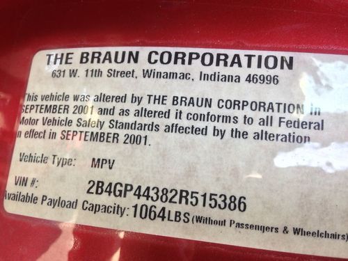 Lowered floor wheelchair minivan dodge caravan vmi summit ramp conversion(US $7,900.00)
