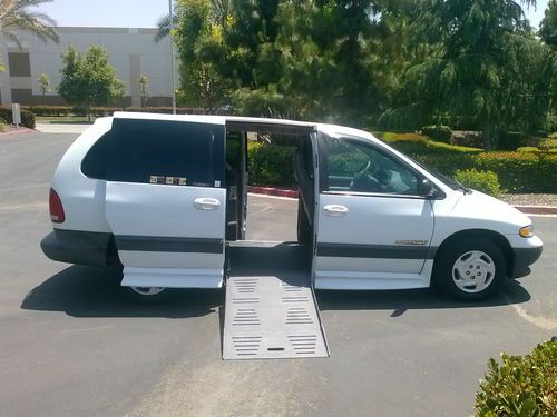 1999 -- DODGE GRAND CARAVAN HANDICAP CONVERSION WHEELCHAIR VAN BY BRAUN ENTERVAN MANUAL RAMP!!!!!, CLEAN TITLE NO ACCIDENTS, 67 K ACTUAL MILLES!! cloth Interior, 3.3L V6,Power Windows, Power Locks, Power Mirrors, ABS , Front Air Bags,Rear Bench, Tinted Glass, Rear Air, Tilt Wheel, Cruise Control, AM FM Stereo, BRAUN conversion with" Dropped Floor,Removable front Seats, MANUAL OUT FLOOR ramp .This is a clean looking and solid van in very good condition: the body is straight and glossy and the interior is also in very good condition and it rides and drives great. Feel free to contact me my phone # is 909 528 25 45 thank you for your time. Lowered Floor- 11" lowered floor. The floor is lowered from the firewall to the rear axle and provides a choice of three wheelchair securely positions. Front row drivers position, front row passengers position or middle row position.