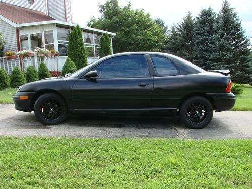 You are bidding on a 1998 Dodge Neon Sport with 137,773 miles. Painted semi flat black. The car has a 5 speed manual transmission with a 2.0 L. DOHC I4 engine. Runs excellent. Great gas millage. Shifts smoothly. Oil changed every 3000 miles. No visible rust on the body except a couple small bubbles on the roof (as shown in the pictures). Working sunroof. Tires are in pretty good shape. New headlights also. New front and rear brakes installed few months ago. replaced; spark plugs, spark plug wires, battery, alternator, timing belt, pulleys and water pump ( all replaced within a year). Comes with a custom painted white interior. The only flaws i have to point out is that the tint on the windows is starting to peel and the air conditioning is not working. It may need to be recharged. Clean title. The car is my daily driver so miles will go up. If you have further questions please feel free to message me. HAPPY BIDDING!!!
