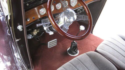 I bought the truck at auction about a year ago and started work on it. Added an brand new motor, a 350 that I had built by a former drag racing crew chief. Its a 350 with custom Alloy heads with 200 fuel rails roller lifters and a matched cam. Flat top 10.5 to 1 pistons with a custom crank and bearings. 750 Holley double pumper with an electronic ignition set up. New headers and exhaust system. It dynode at 413 HP and for a 1400 lb truck thats more than needed. a custom 3000 stall and a racing 3 speed trans with Locar shifter. Dolphin Gauges a new billet collum with a new custom wheel, A very nice wood dash and a stereo for some road tunes. Power windows and a nice custom interior. I had a complete brand new brake system installed with all new rotors drums and master cylinder, I had new brake lines installed and new fittings. It has a 9 inch rear end and new shocks. The exhaust is custom built with hugger headers and chrome and stainless fittings, because the truck sits so low i had NASCAR oval stainless exhaust pipe ran and if you have ever priced that stuff it was not cheap. I have been a gear head all my life and this is the first Dodge Brothers I have ever seen so I did a little research. In 1929 the Dodge brothers both died and the company was sold to the Chrysler family. sales of trucks back then was very low and Mr Chrysler wanted to boost sales and also honer the two Dodge Brothers. So in 1933 Mr Chrysler decided to build what he called the glamor truck, He took the sheet metal from the 1933 Dodge Automobile and used it on the pickup in an effort to make the trucks more car like. He also commissioned an artist to make a hood ornament for the truck line. So as you see 1933 was the first Dodge Ram. The Dodge Brothers truck line was produced from 1933 to 1935 and then the name was shortened to Dodge. There were 99,000 plus of these trucks built and over the years the numbers have dwindled to just a few left. most are in collections and if you look for Dodge Brothers pickups you will not find any and what you do find will either be a basket case or in the very high price range, the few show trucks I have found were listed at close to 100K . This pickup is not perfect, it does have a scratch here and there and a few chips in the paint, If you invest in paint this truck will sell in the 80s but I felt the paint is just too nice to redo now. I do not need to sell this truck but I have found another project I want to do and if I am going to do it I need the garage space. This truck is very rare and will win everything you enter it in as now one has seen anything like it, So if you are a guy that wants to be the center of attention and have a big crowd around your Hot rod this is the one for you |