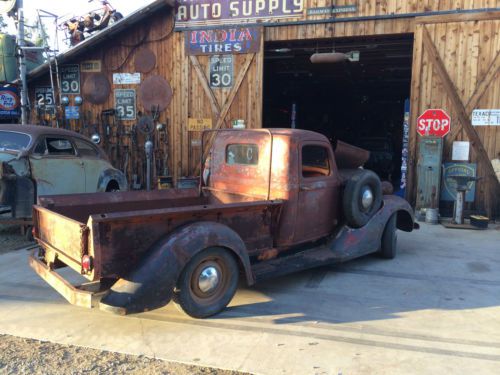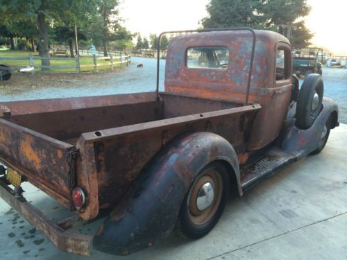 1936 DODGE TRUCK-HAS BEEN PARKED SINCE 1960.WE REMOVED BODY ,SEND AXLE TO SIDS IN OKLAHOMA HE DROPPED IT 3",WE RECESSED THE FIREWALL 3" INSTALLED A 1964 CHEVY 292 -6 BANNGGER..WE INTALLED NEW REBAL WIRE HARNESS,REBUILT BRAKES ALL FOUR CORNERS INSTALLED A MID 60S 9" FORD ,3 SPEED SIZ TRANY, NEW MASTER, NEW RE BUILT 4 CORE RADIATOR NEW FULELINES NEW BRAKE LINES, NEW BATTERY, NEW DRIVELINE , INSTALLED TURN SIGNALS LOWERED THE REAR 3"----ALL 12 VOLT SYSTEM WE PATCHED THE WINDSHIELD FRAME AND INSTALLED PLEXIEGLASS,---- NOW FOR WHAT WE DIDNT DO NO RUST REPAIR ,NO PAINTING NO FANCY STUFF -- TO MUCH TO LIST -IF YOUR LOOKING FOR A 75 MPH DRIVING OLD TRUCK THIS IS IT ,ITS RUNNING 1941 PLYMOUTH 16"WHEELS AND OLD TIRES FROM THE 40S,1948 HUBCAPS, NO SIDE GLASS,THE ROOF WAS CUTOUT IN THE OLD DAYS SO A GUY COULD FILM MOVIES OUT THE TOP HE WOREOUT THE PASSENGER SIDE SEAT, THEY DID WELD THE ROOF BACK INN .....KOOL OLD DAILY DRIVER CLEAR CAL TITLE FROM 1948