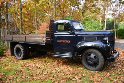 1947 Dodge flatbed truck .Very heavy duty.Flat head 6, 1 and 1/2 ton. Great for advertisement for business. I used it to pick up wood at the lumber yard for construction. Needs new tires and brakes. Just be aware that everybody wants to stop you and talk about the truck,so it's hard to get any work done. If you know old trucks this is not a speed demon, but it will pull down a house!! This truck is also for sale locally, so this ad can be pulled at any time.