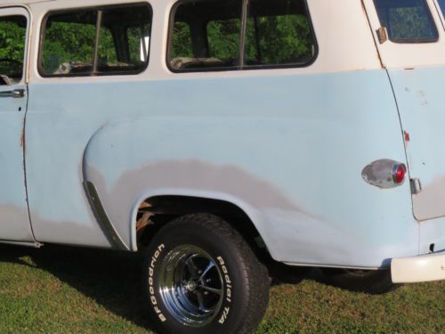 PLEASE CHECK OUT MY OTHER VEHICLE AUCTIONS 1962 Dodge "Power Giant" D100 Town Wagon These trucks are a really Rare Find 52 years after production and an even Rarer Find in the Excellent Condition this truck is in! This truck was purchased new at McKeon Motors, Inc. in El Paso, Tx. (Dry Desert Area) on February 21, 1962 by a company called The Commonwealth Plan, Inc. The truck was in El Paso for most of it's existence but eventually left town for Lone Pine, CA. not very far from the famous Death Valley desert area where it remained until late in 2009 when it was sold to a guy in Northern Ohio. From there it quickly changed hands to another guy in that same area who made his living as a professional Chrysler mechanic, and as soon as he got the truck home he started going through the whole truck mechanically and rebuilding the engine, replacing the clutch & pressure plate, replacing all of the brake system with new parts and going though the front end with any new parts that were needed. All of this work was done less than 1,000 miles ago. This truck can drive safely and dependably anywhere you want to go but maybe not as comfortable as you might be used to traveling! I bought the truck 3 years ago with some really big plans to do the whole Pro Mod thing to it but my enthusiasm has since faded as I just have too many other projects in life. I will reduce the final purchase price of the truck by $800.00 if the buyer would prefer that I keep the new Chrome Magnum 500 wheels and center caps and the Radial T/A's off the truck and sell it with the original wheels and hub caps on it. Otherwise, both sets of wheels will come with the truck for the final bidding price. I have some pictures of it with the original wheels and hub caps on it, so let me know if you would like to see them and I'll get them too you. If you have any questions call Scott at (405) 203-4441 or email me at pentastarcars@cox.net |