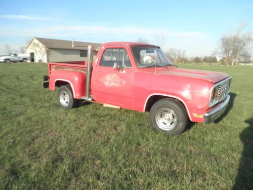 1978 Dodge Lil Red Express Truck. Project truck, barn find. Truck needs a full restoration.Original 360 HP/automatic, PS, PDB, factory Add-on Mopar AC and Cruise. Engine compartment is pretty original. All correct components. Original air cleaner, hoses, etc. All original sheet metal. Rust is minor in the size of a 50-cent piece in the passenger floor pan. Rockers, pans, etc are fine. A few minor repairs needed in the door corners. Bottom of doors, etc are nice and clean. Truck bed is in overall good condition. I have all 4 correct slotted wheels, 15x8 and 15x7. Truck is factory bench seat, but I do have a full correct bucket seat set up to use as a core set. Truck runs and drives, but has not been on road in years. Its a restoration project that has a clear title. The motor has a bit of a lifter tick, which is common with mopars rockerarm system. Tread is old, and i would not recommend driving on the tires. Stack stainless is nice and only needs cosmetic restoration. Step plates are also nice and rust free. Bumpers need rechromed. Frame is in great condition, no rot or damage. Transmission/brakes work fine. Lights, radio, gages work.