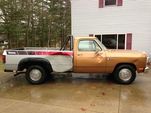 1986 good old Dodge boy farm truck. We removed the farmers flatbed and replaced it with a solid dented junkyard bed, roll bar included. Purchased 4 wheel drive otherwise this 35,000 mile classic wouldn't be for sale. This truck is a V8 automatic with power steering and breaks. The truck starts every time; runs great and is fun to drive. Look at the pictures!! Bid to win