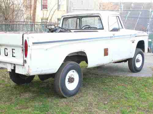 1968 Dodge Power Wagon W200 4 x 4; 99% rust free west coast truck; two owners. Rebuilt 383, 2 barrel, 4 speed, manual steering, power brakes, Dana 44 front and Dana 60 rear with 4.10 Track Lock. 16 inch rims. Exhaust work needed.