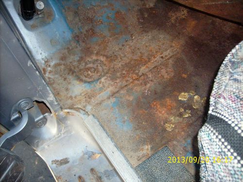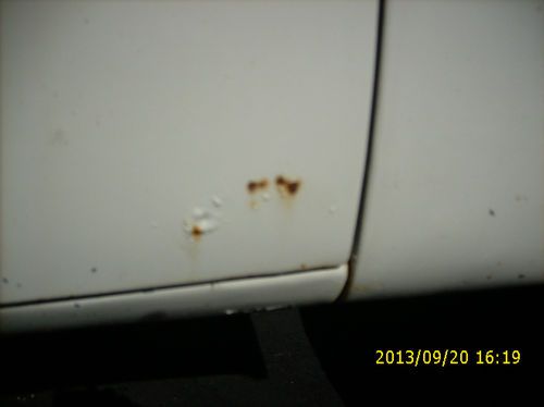 IT HAS MINIMUM RUST A FEW LITTLE BUBBLES IN THE PAINT ON THE DOOR BOTTOM EDGES ARE STARTING.THE FLOOR SEEMS SOLID WITH ONLY SOME SURFACE RUST AND A FEW MINOR PIN HOLES.