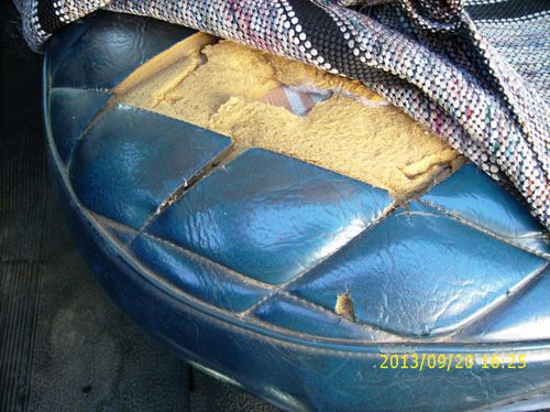 THE SEAT HAS BEEN REDONE ONCE OVER THE YRS BUT NEEDS TO BE FRESHENED UP AGAIN.THE CUSHION IS STILL FIRM AND NICE BUT THE TUCK AND ROLL MATERIAL NEEDS TO BE -DONE WITH A MORE OE STYLE LOOK.