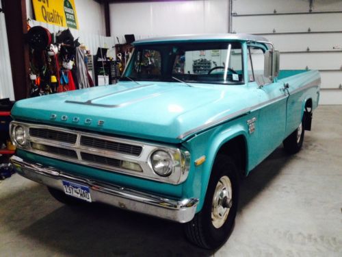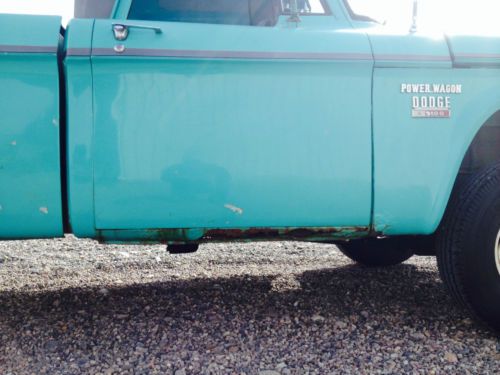A real nice original Power Wagon with 318 and 727 automatic transmission and 3.73 gears. The odometer reads 46,838 miles and I was told by the previous owner that it was actual, though I cannot verify it, I would agree with it based off the overall wear and tear of interior and the tightness of the column shifter. The gauges all work, lights, turn signals, wipers, heater and radio 8 Track. The interior paint, dash pad (original and no cracks) and gauges are in really good shape and it appears that the truck has been garaged most of its life. The truck has been repainted at some point an original turquoise adding a gray color to the upper part of cab though not real recently. The floor boards have been patched I was told by previous owner, there is rust through on passenger rocker panel and some rust on drivers rocker as well, but not through. The bed has a piece of steel in front part of bed on floor (welded in as an additional support for fuel tank in rear?) There are lots of classic Ford and Chevy trucks available. There are a few Dodge Power Wagons as original as this one...... Email me and ask questions and I will try to answer them as best I can or take additional pictures. The truck is mechanically solid, newer front and rear drivelines, reconditioned radiator and has near new 10 ply tires. It drives highway speeds and will do around 70 mph. Look at pictures and use the zoom feature too check it out!! BUYER IS RESPONSIBLE FOR ALL SHIPPING COSTS!!! PAYMENT A $500 deposit is required from the winning bidder, due electronically via Paypal within 24 hours after auction ends, to hold the vehicle. I do not accept Paypal for payments over $500. Deposits only. Respectfully please bid responsibly by having any required financing in place before committing to purchase the vehicle as full payment is due within 7 days of auction end via cash or certified bank check (drawn on a major US bank). Posted with eBay Mobile On Apr-24-14 at 17:03:46 PDT, seller added the following information: Correction truck has 3.55 gears |