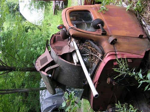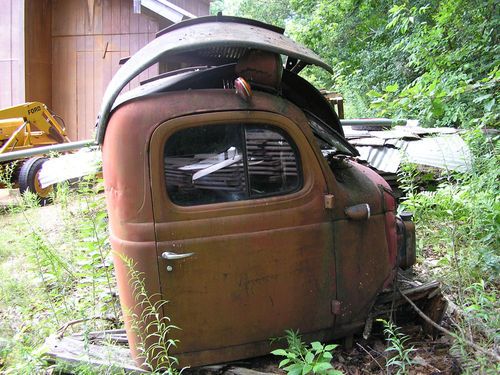 Both of these trucks are projects. I'm selling them together. The '46 has had brakes,rear grease seals,new fuel tank, sandblasted and painted frame. The engine is running but makes a banging sound. The cab on the '46 is probably no good. Big dent in roof. The '56 needs a generator but will run.