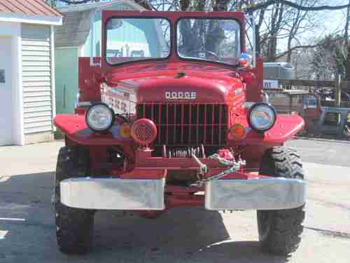 1965 Dodge Power Wagon Fire Truck, 250 gpm pump, equipment for fighting wildfires, or serving beer. Two seperate tanks, combined hold 150 Gallons of water, or two half barrels of beer. Tanks are insulated for ice and beverage storage, water, or both. Truck was refurbished in 2005. Paint is substantially good, but needs touch-up on floor areas. The hood and fenders can be buffed back to full color. All equipment shown stays with the truck and is in great shape. Tires are 80%, standard 9.00-16.00 Good Year Hi-Miler mud and snows with a "D" range. The 16,930 miles are original miles. All major components (engine, trans, tranfer case, etc) are the original components that were on the truck when it was built. I am the second owner of the truck, it came to directly from the fire company that was the original owner. The truck is geared low, (5.83 gears) and does a max speed of 45mph. The engine runs like a top once it warms up. No engine issues at all. The carb may need a rebuild at some point, but works fine otherwise. The clutch and tranmission are excellent, it shifts very smoothly, if you know how to drive a Power Wagon. (standard NP435 with syncros) Brakes are good, but bleed down if the truck is not run after about a month. The brake booster is not original to the truck and was added before I owned it, but is needed to stop it when fully loaded. (the truck is heavy!) Winch and PTO work excellent, it has been used to move things and pull things, but never the truck itself since I have owned it. I did not take this truck off road since I have owned it, and has been cared for in a great way. It has been moved outside and needs to be stored inside somewhere else, and that's why I am selling it. No room anymore. The driver's seat will need to be rebuilt, as will the bottom cushion for that seat. The truck will need a few dabs of paint here and there, but is ready for any parade, picnic, show, or general task requiring a strong truck with a winch. Included in the sale are 2-18 foot chains with hooks,(10k lbs) and 8k lbs snatch block. Winch has 150+ feet of 7/16 wire rope. Siren works good, but has no siren brake. Locking hubs on the front axle make the drive alot better, they are included. The truck has been a big hit at concerts in Philadelphia, Eagles games, fire company wet-downs and musters, benefits of all sorts, the list goes on. I will assist in any way for transportation of the truck, but expences and arrangements are entirely on the buyer. The truck is available for inspection by appointment ONLY. Do NOT show up expecting to see it when I am not here! Read this part again to be sure you understand! Any questions or appointments can be forwarded to me through ebay, or my phone number.....609-859-5433. I hope this truck finds a good home, good luck bidding. Last note....the truck is for sale locally and I reserve the right to end the auction early.
