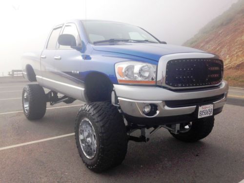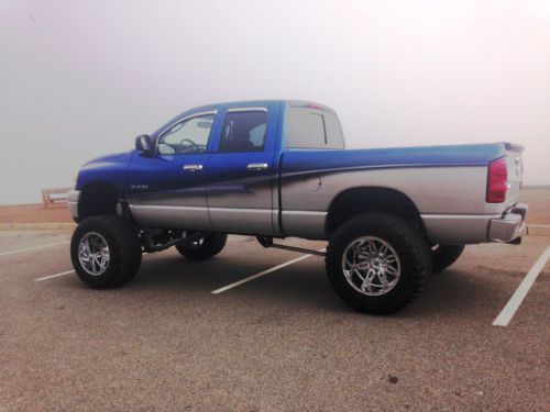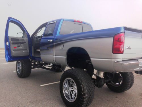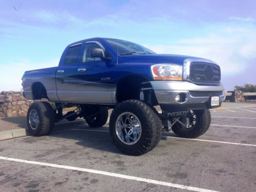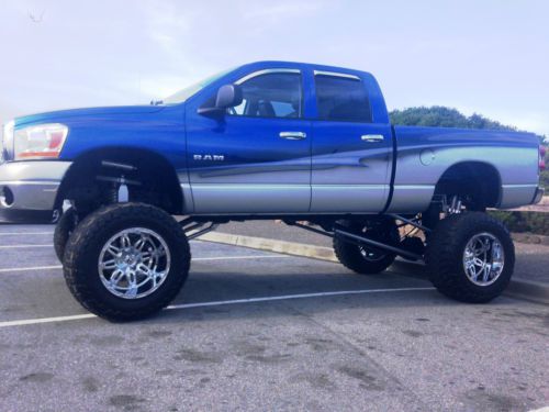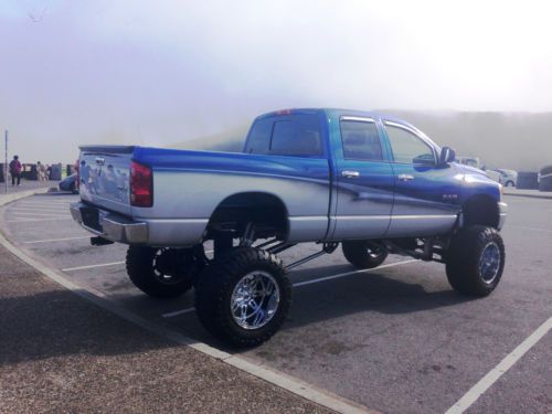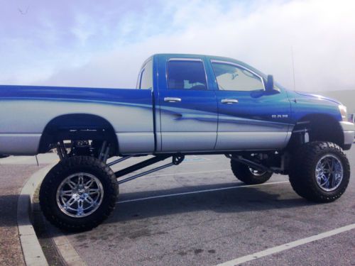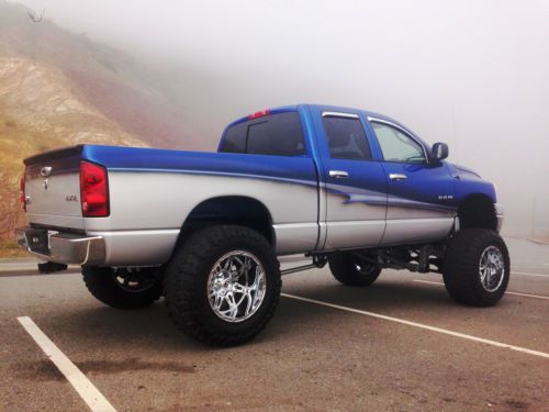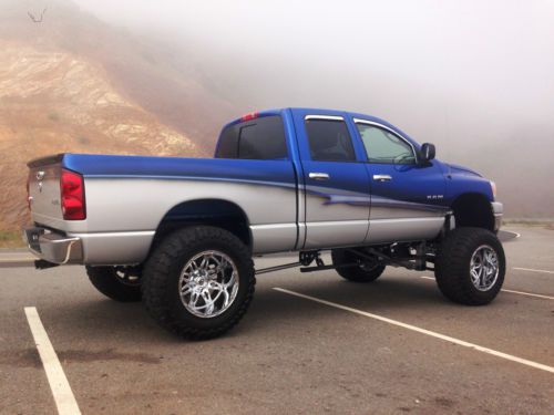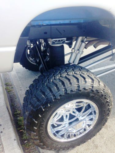 The truck started as a Southern Comfort package, black alligator seats leather inserts, two tone custom paint job. I bought it with a previous salvage title and decide to customize with the followings. I have all the receipts. Altered Ego suspensions one off a kind custom coil over in the front and airbags in the back. Train horns. Automatic steps KN cold air filter 20x15 wheels fuel full throttle chrome wheels 20x15x38 tires Toyo MT, very quiet and smooth ride. HID headlights and fog lamps New brake pads and rotors all around. Yes this truck rides and drives fine, I went trough the windiest street Lombard st in San Francisco. This truck it's awesome and looks nice, everywhere I go people stare and take pictures with it. The height is adjustable In the rear with a flip of a switch. Has 61k miles and all maintenance is up to date. V8 powerful Hemi engine. Automatic transmission, cold a/c, 4x4. Power rear slide window. Two tone leather seats. |
