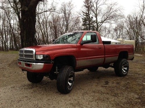 I'm selling my 1996 Ram. It's a Regular cab long box lifted 7 inches(3" body and 4" suspension) with 35" Hankook dynapro tires on Dick Cepek rims. It's got the 360 ci V8 with headers and newer dual exhaust. Originally from the south, the truck has little to no rust. Not even surface rust on the frame, she's been taken care of.