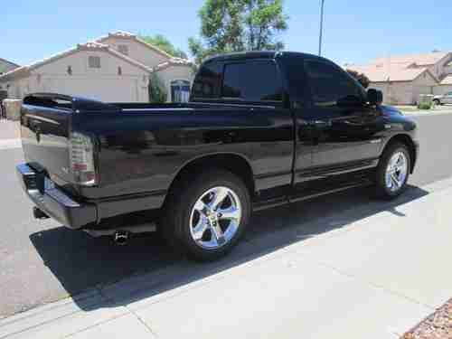 Hemi Ram, loaded, power windows, locks, seat, cruise, tilt, tow package, power heated mirrors, factory bed liner, slider, tint, flow master exhaust, AEM cold air intake, 20" 08 chrome Ram wheels, rear spoiler, ground effects, SRT 10 front fascia, Euro headlights and taillights, alarm, keyless entry, remote start, 7" Pioneer touch screen CD/DVD in dash, two Pioneer 12" subs, amp, equalizer, 4 wheel disc brakes with cross drilled rotors, Mobil 1 synthetics, K&N filters, ice cold A.C., everything works, needs nothing, truck runs and drives great, very fast, clean clear title, many new parts, immaculately maintained and cared for, always garaged, 2" drop kit included,