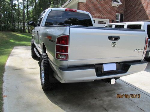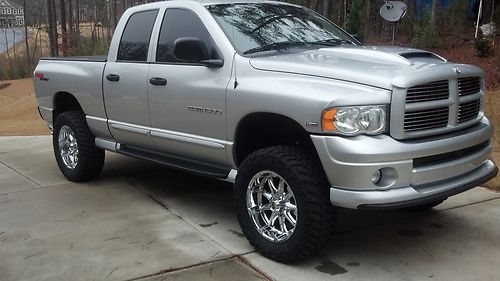 ***Original owner***Rare 2005 Dodge Ram 1500 4x4 "HEMI-SPORT PKG" Bright Metallic Silver, 56,000 miles, Fully Loaded **Ordered with almost every Option**except (1) which was not available at time of production. Truck was Professionally lifted with 6" Fabtech lift est.$7000.00 spent on lift, wheels/tires, adjustable shocks, Ball joints, tie rods, New cv joints, Timken bearings, 35" Nitto Trail Grappler tires/KMC XD SERIES 20" wheels, MBRP stainless cat-back exhaust, BAER upgraded cross-drilled rotors front/rear, EBC Pads. Anything the truck has ever needed has been done and done properly. All service records and Original window sticker MSRP($47,385.) Clean CARFAX. APPROXIMATELY 4,000 miles on lift, tires etc.