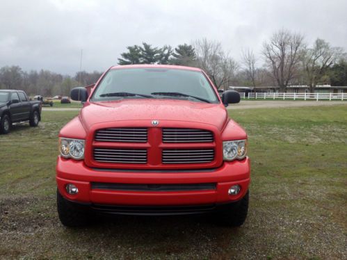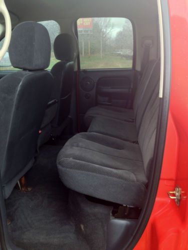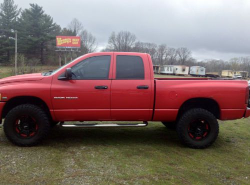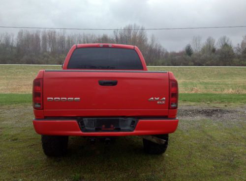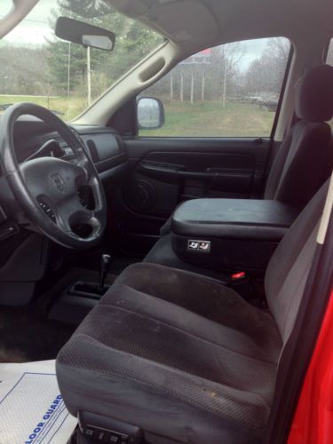 You are bidding on a 2003 Dodge Ram 1500. Truck has been mostly used for transportation to and from work. As stated above, there is some correctable cosmetic damage to the truck including rust and cigarette burns in the seat. Truck comes equipped with automatic windows, automatic seats, anti-lock brakes, 4-wheel drive, DVD Player, custom performance wheels, cruise control, air conditioning. Truck is in great running condition and is ready to move.