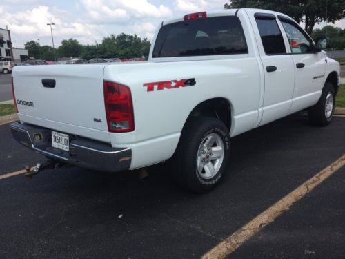 2003 Ram 1500 quad cab SLT short bed, 115,000 miles, 4.7 L V8, white with black interior, great shape. It is not really a TRX4(just has the decal), it's a 2wd, not 4wd.