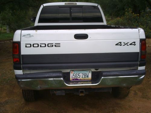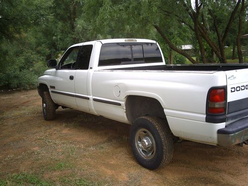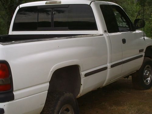 1999 Dodge Diesel Club Cab Truck. See above regarding the condition and any flaws. Drive train in good shape. Will need tires but can definitely drive as is. Needs pilot bearing in drive shaft of the 4x4. Four wheel drive works fine. This truck has an eight foot bed. It has pulled a fifth wheel a half a dozen times since I've owned it and it has been in four wheel drive a few times. I've had this truck for eight years. The transmission has been checked and is in good shape. I put in another injection pump and the engine works fine. It's a good, all-around truck!