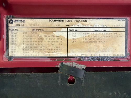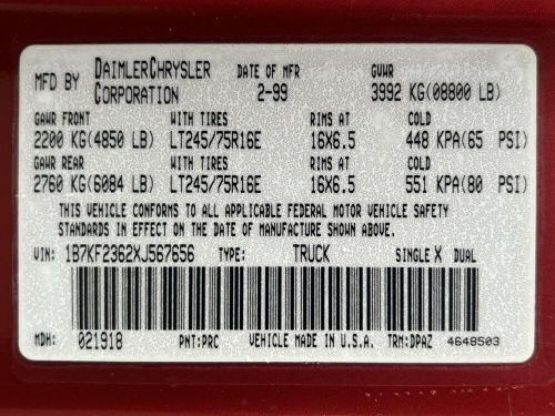 VIN (Vehicle Identification Number): 1B7KF2362XJ567656