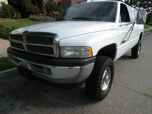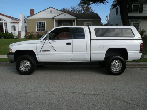 1999 Dodge Ram 2500 4x4 Diesel she only has a 110,000 miles and runs great and drives great I have done everything for this Truck i had a brand new transmission installed at Torrance Transmission at 88,000 miles $2500 i put Rancho 9000 shocks air controlled so u can adjust them manually for a stiffer ride or for towing as well as a new steering stabilizer as well $500 I put brand new BFG all terrain Tires on her $1000 from Americas Tire I had the radiator flushed and a factory thermostat installed not dirty but i like things done rt$150 at 90,0000 miles the valves were adjusted$300 i also had a new steering gear box installed as well as an aftermarket bracket to stiffen the steering as well along with new brakes $1100 done at Dodge Dealer i also put a new throttle position sensor in as well as new battery cables also installed at the Dealer $800+ i also changed all the gear oil in the front differential as well the rear differential i also put new belts hoses all Gates Brand from Napa it also has the rubber floor in her which i think is way better than carpet Theres a Snug Top camper shell on her as well it drives nice and stiff and tight as is totally Rust Free!!! All you have too do is jump in her and Go shes my baby and i never thought i would sell her but things change Bid With Great Confidence and No Fear